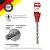 Крестовая вставка из карбидного сплава (YG8C) с 4 гранями, расположенная на конце бура, способствует эффективному и быстрому входу в материал, что увеличивает долговечность бура и снижет вероятность его поломки при попадании в арматуру.