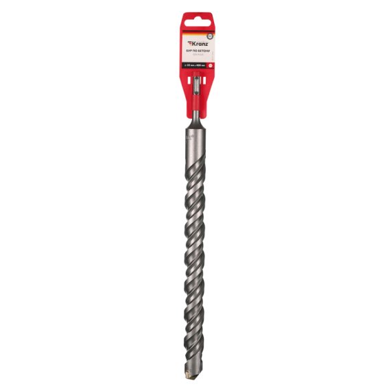 Бур по бетону с хвостовиком SDS PLUS 32x400 мм KRANZ используется во время строительных и ремонтных работ. Предназначен для сверления и бурения отверстий в слабоармированном бетоне, граните, кирпичной кладке и камне при помощи перфоратора с креплением SDS PLUS, которое используется в большинстве электроинструментов бытового и профессионального назначения. Изделие выполнено из качественной стали, что обеспечивает долгий ресурс работы и высокую производительность. Конструкция со стабилизирующей спиралью сохраняет точное положение бура во время сверления и равномерно распределяет ударную нагрузку, кромки с 2 гранями обеспечивают легкое выведение шлама и мелких частиц пыли из рабочей зоны, что поддерживает скорость работы, а усиленный резец предотвращает заклинивание оснастки в арматуре. Твердосплавная вставка на конце бура способствует эффективному входу в материал, что увеличивает цикл службы оснастки и уменьшает износ сверла.