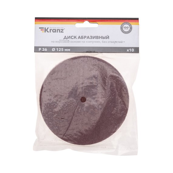 Kranz KR-91-1143 Диск абразивный на ворсовой основе, на липучке, без отверстий, P36, 125мм