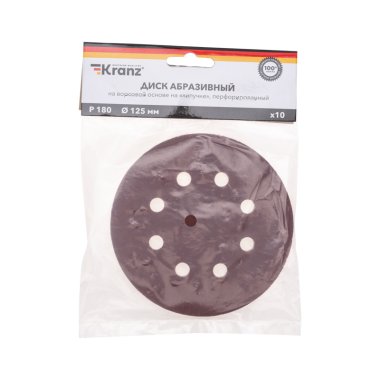 Диск абразивный на ворсовой основе, на липучке, перфорированный, P180, 125мм, 10 шт. KRANZ