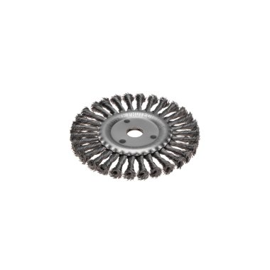 Прочная закаленная проволока собрана в тугие пучки с расходящимися краями. Такой тип проволоки характеризуется жесткостью, поэтому предназначен для удаления особо сложных загрязнений. Подходит для грубой и быстрой зачистки.