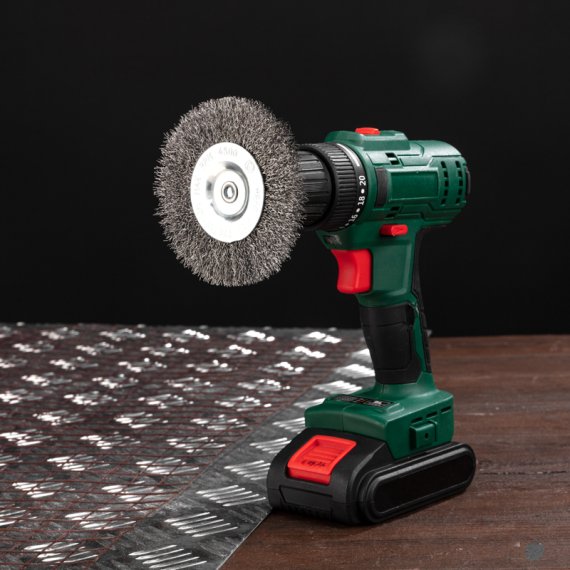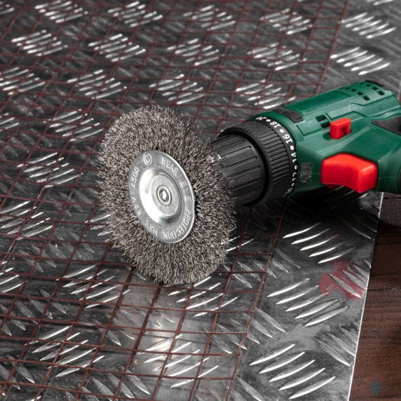 Щетка оснащена цилиндрическим хвостовиком, который позволяет легко устанавливать ее на большинство электрических дрелей.