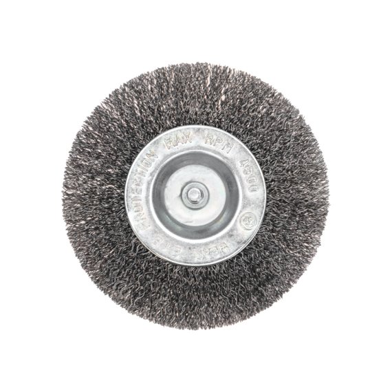 Витая щетина оптимально подходит для аккуратной обработки и шлифовки поверхностей, что позволяет удалить тонкий слой материала. Корпус щетки оцинкован для обеспечения коррозионной стойкости, а щетина покрыта маслом.