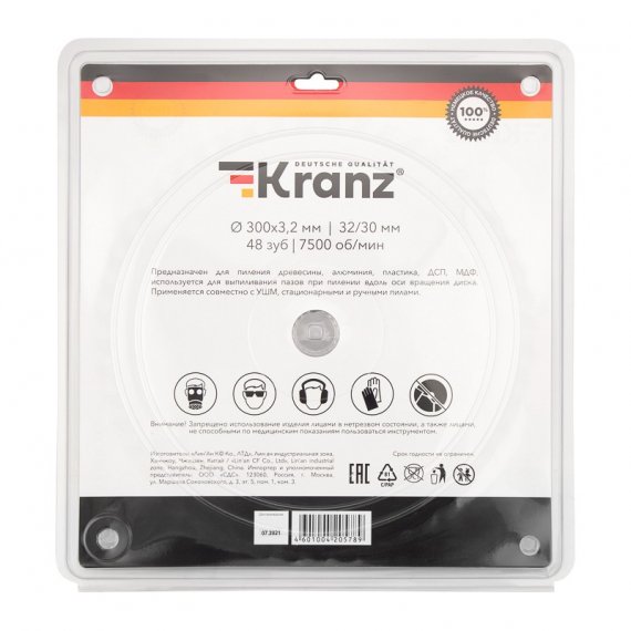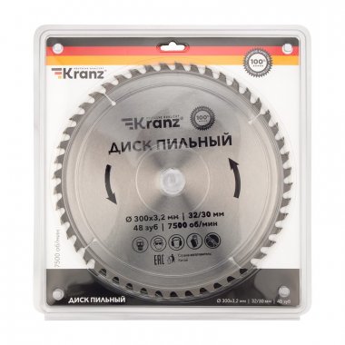 Kranz KR-92-0133 Диск пильный 300 мм х 48 зуб х 32/30 мм