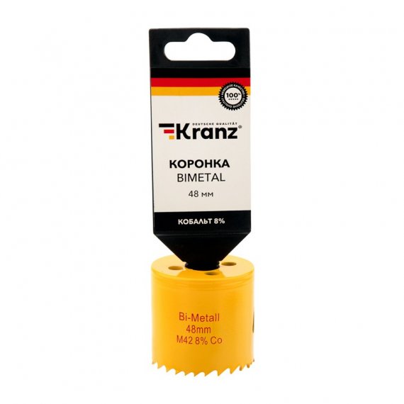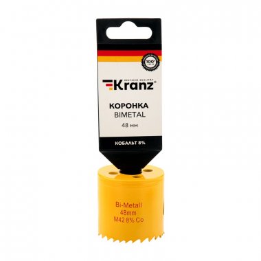 Коронка KRANZ Bimetal используется во время строительных и ремонтных работ. Подходит для сверления в безударном режиме дерева, стали, металла, гипсокартона и пластика совместно с дрелями, перфораторами и стационарными станками. Имеет переменный шаг зубьев 4-6 мм, изготовленных из быстрорежущей стали Р6М5К8, устойчивой к нагреву. Тело коронки выполнено из инструментальной стали. Благодаря качеству используемых материалов оснастка отличается долгим ресурсом работы и высокой производительностью. Конструкция оснащена специальным отверстием в боковой стенке, которое компенсирует деформации при перегреве, отводит строительную пыль и шлам. Особая заточка зубьев способствует эффективному входу в материал, что позволяет вырезать отверстия правильной круглой формы без сколов и трещин.
