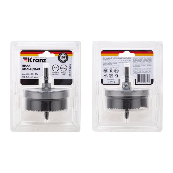 Kranz KR-92-0256 Пила кольцевая, 26, 32, 38, 45, 50, 56, 63 мм, глубина пропила 1"