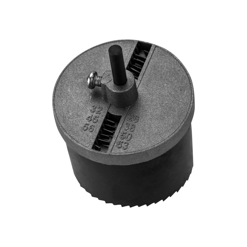 Комплектация: кольцевые пилы 26, 32, 38, 45, 50, 56, 63 мм, держатель, центрирующее сверло.
