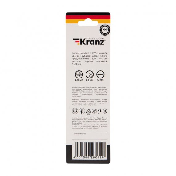 Kranz KR-92-0310 Пилка для электролобзика по дереву T119B 76 мм