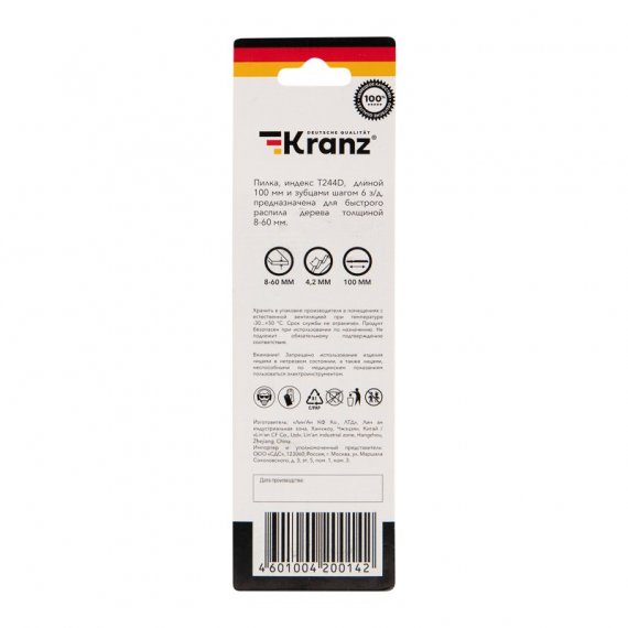 Kranz KR-92-0312 Пилка для электролобзика по дереву T244D 100 мм