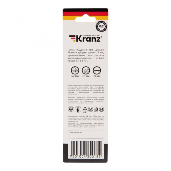 Kranz KR-92-0313 Пилка для электролобзика по металлу T118B 76 мм