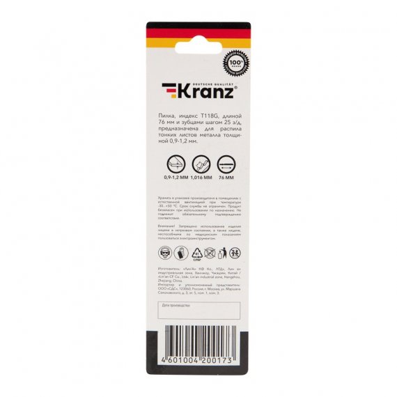 Kranz KR-92-0315 Пилка для электролобзика по металлу T118G 76 мм