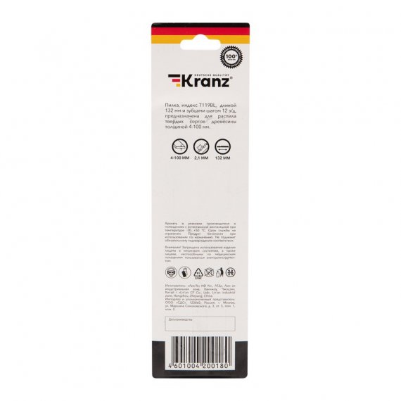 Kranz KR-92-0316 Пилка для электролобзика по дереву T119BL 132 мм