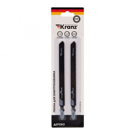 Пилка для электролобзика по дереву T119BL 132 мм 12 зубьев на дюйм 4-100 мм (2 шт./уп.) Kranz