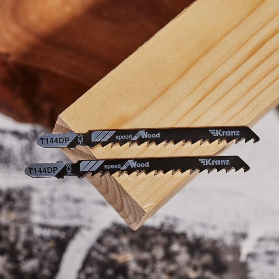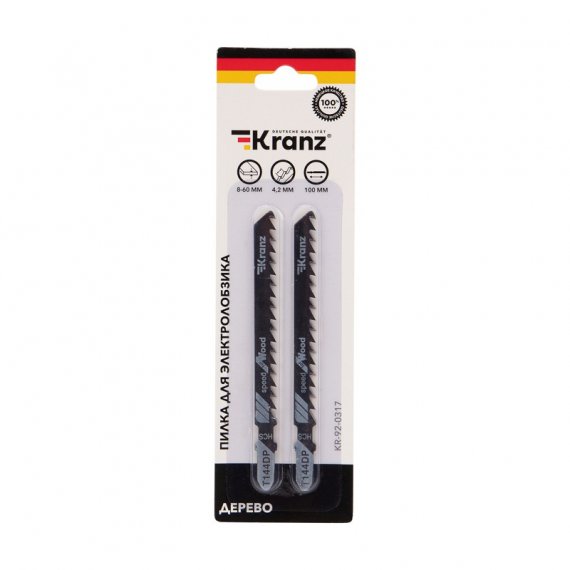 Пилка для электролобзика по дереву T144DP 100 мм 6 зубьев на дюйм 8-60 мм (2 шт./уп.) Kranz