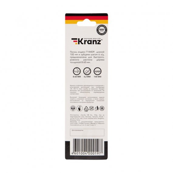 Kranz KR-92-0317 Пилка для электролобзика по дереву T144DP 100 мм