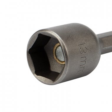 Ключ-насадка 13х48 мм, 1/4" магнитная для закручивания кровельных саморезов, болтов и гаек. Магнит впрессован внутри головки насадки, благодаря чему закручиваемый крепеж надежно фиксируется во время работы. Применяется с шуруповертом, дрелью или отверткой.