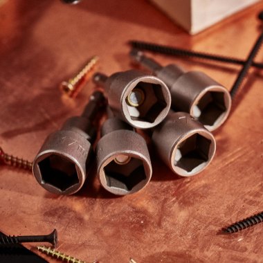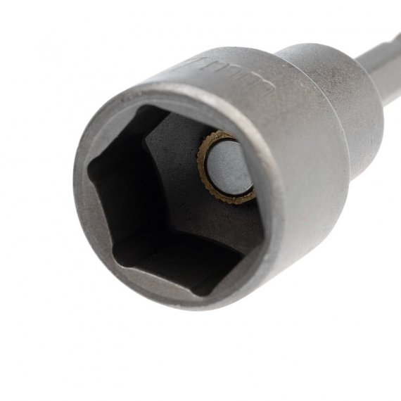 Ключ-насадка 17х65 мм, 1/4" магнитная для закручивания кровельных саморезов, болтов и гаек. Магнит впрессован внутри головки насадки, благодаря чему закручиваемый крепеж надежно фиксируется во время работы. Применяется с шуруповертом, дрелью или отверткой.