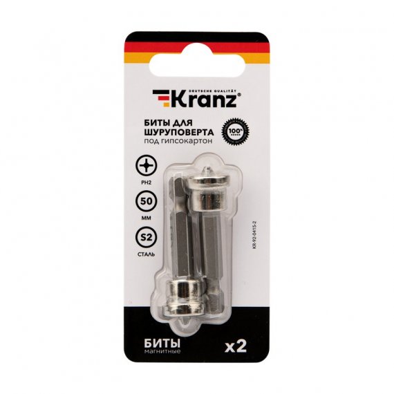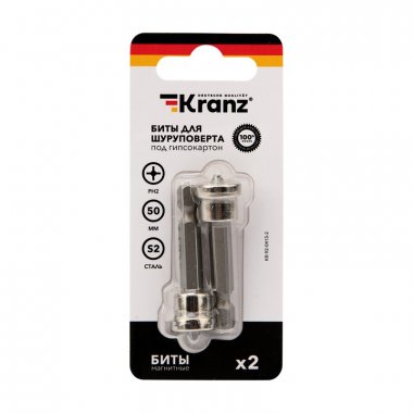 Бита для шуруповерта PH2х50 мм под гипсокартон (2 шт./уп.) Kranz