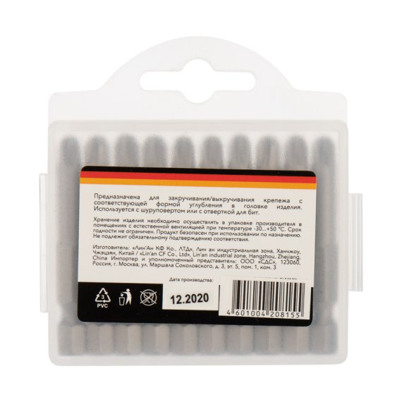 Бита PZ3х50 мм (насадка) для закручивания крепежа (шурупы, винты). Произведена из стали S2 и закалена до оптимальной твердости, чем обусловлен высокий ресурс. Шестигранный хвостовик (Е6,3) обеспечивает быструю и надежную фиксацию в шуруповертах. Также используется с отверткой для бит.