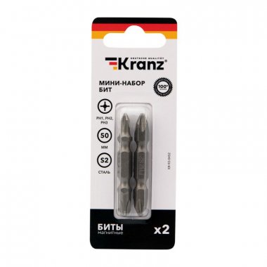 Мини-набор бит двусторонних PH2xPH2, PH1xPH3-50 мм (2 биты на блистере) Kranz