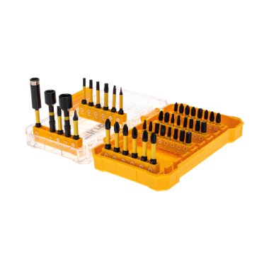 Набор упакован в ударопрочный удобный пластиковый кейс и содержит широкий размерный ряд всех востребованных размеров бит.