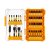 Биты 25 мм (24 шт): PH1, PH2х3 шт, PH3, PZ1, PZ2х3 шт, PZ3, SL3, SL4, SL5, SL6, H3, H4, H5, H6, T10, T15, T20, T25, T30, T40.